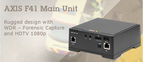AXIS F41 Main Unit is designed for use with anAXIS F sensor unit in extremely discreet video surveillance applications. The main unit can be installed in a sheltered area up to 12 m (39 ft.) away from a sensor unit, which can be placed in tight places, indoors or outdoors.