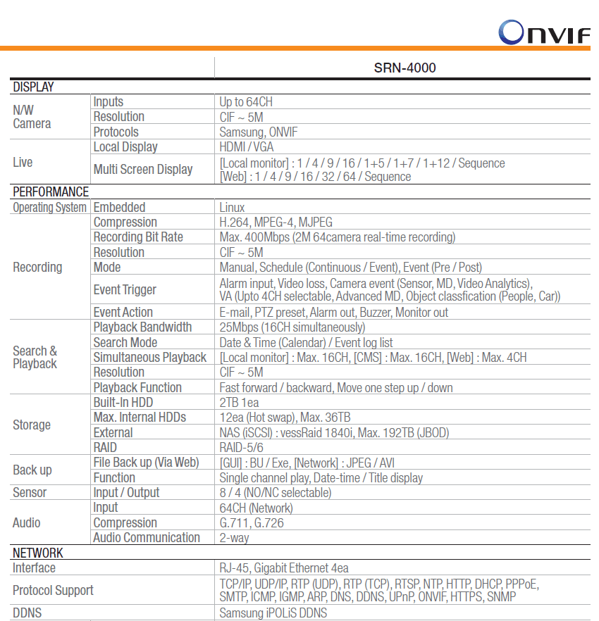 SAMSUNG HANWHA SRN-4000 64 CH 400Mbps? NVR
