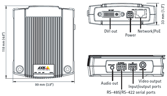當網絡攝像機或視頻編碼器中觸發告警時,AXIS P7701 可以通過配置而自動顯示告警觸發的視頻。AXIS P7701 還可以解碼單聲道音頻。視頻解碼器可以通過以太網供電或者通過外置電源供電。