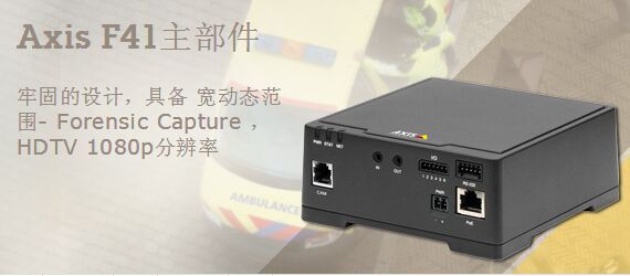 AXIS F41 能夠承受惡劣的條件,如震動、沖擊以及溫度變化,因此非常適用于應急車輛,如警車、消防車、急救車以及用于運鈔和其他貴重物品的裝甲車。主部件可以很方便的安裝在柜子或者小的殼體內,因為所有的接頭都安放在主部件的一側,使所有的電纜都朝著同一個方向,不占用額外空間。主部件的底部可以直接掛到DIN軌道上。